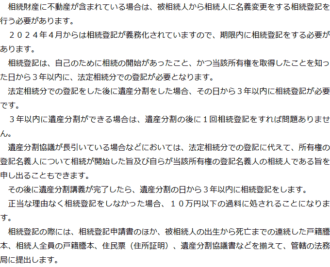 Q&A(目次)Q&Aトップ相続手続きの必要事項に関するQ&A 受付時間 平日 9時~21時、土日祝 9時~18時 夜間・土日祝の相談も対応します (要予約) 所在地 〒271-0092 千葉県松戸市松戸1281‐29京阪松戸ビル3F 0120-2403-39 お問合せ・アクセス・地図